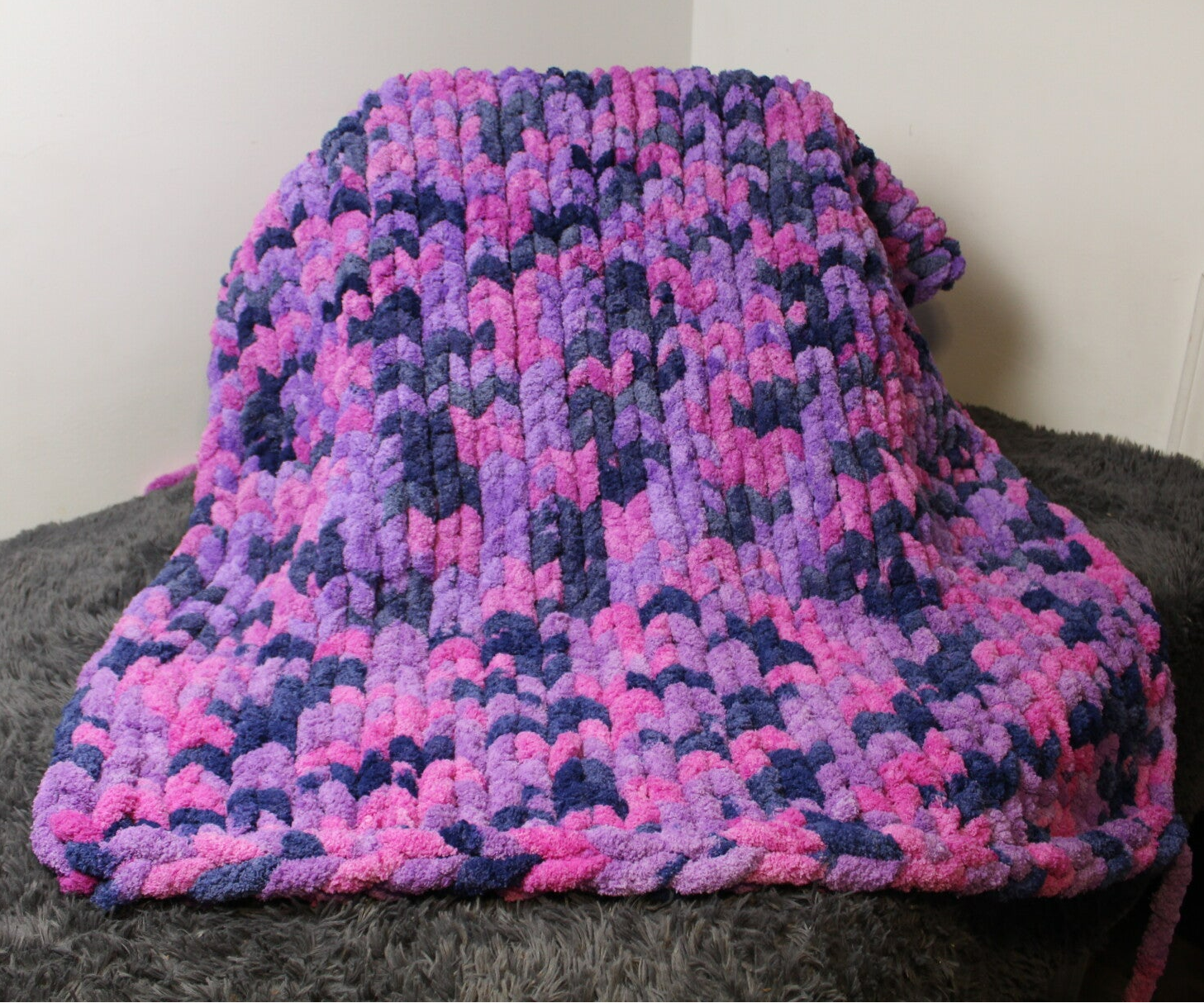 A custom colored blanket of your choice! Custom blankets are priced to ordere and may vary depending on yarn avalability.